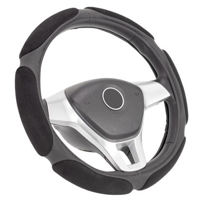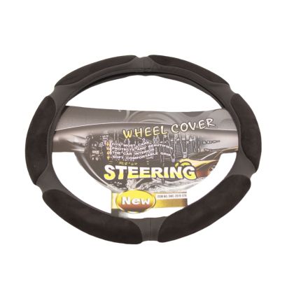 Κάλυμμα τιμονιού από οικολογικό δέρμα 38 cm – Race – μαύρο χρώμα -1 τμχ.
