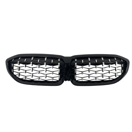 Μάσκα BMW G20 (2018+) – γυαλιστερή Diamond Design – χρωμίου/μαύρη – 2τμχ.