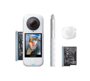 • Insta360 X4 Air Starter Bundle White – Lightweight 8K 360 AI Act Cam Selfie stick,2xbattery,lens cap