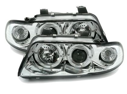 Φανάρια εμπρός angel eyes για Audi A4 (1995-1998) – chrome , με λάμπες (Η1) – σετ 2τμχ.