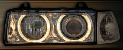 Φανάρια εμπρός angel eyes για BMW E36 (1991-2000) 4d sedan – chrome , χωρίς λάμπες (Η7) – σετ 2τμχ.