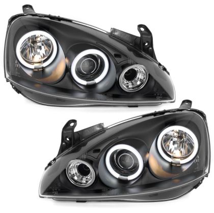 Φανάρια εμπρός angel eyes για Opel Corsa C (2001-2006) – μαύρα , χωρίς λάμπες (Η1) – σετ 2τμχ.