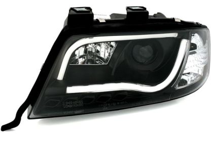 Φανάρια εμπρός Audi A6 C5 (2001-2004) led lightbar – μαύρα , με λάμπες (Η1) – σετ 2τμχ.