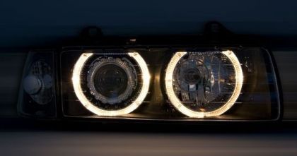 Φανάρια εμπρός Bmw E36 (1991-2000) 2d coupe angel eyes – μαύρα , με λάμπες (Η7) – σετ 2τμχ.