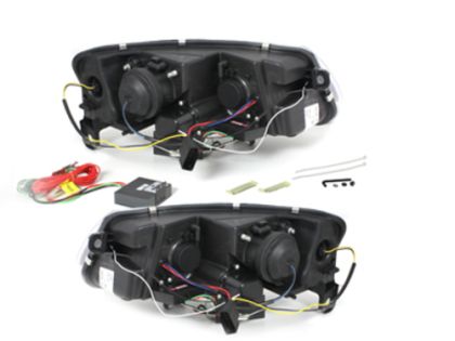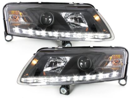 Φανάρια εμπρός για Audi A6 με φώτα ημέρας led (2004-2007) – μαύρα , με λάμπες (Η1) – σετ 2τμχ.
