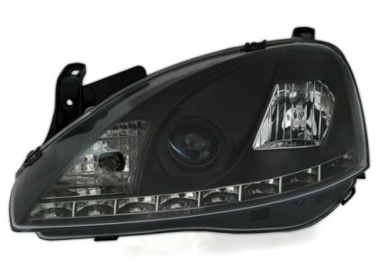 Φανάρια εμπρός led για Opel Corsa C (2001-2006) - μαύρα , με λάμπες (Η1) - σετ 2τμχ.