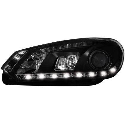Φανάρια εμπρός led για Vw Golf 6 , black , με λάμπες (Η1) – σετ 2τμχ.
