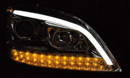 Φανάρια εμπρός Mercedes ML W164 (2005-2008) led chrome με τρεχούμενο φλας – σετ 2τμχ.