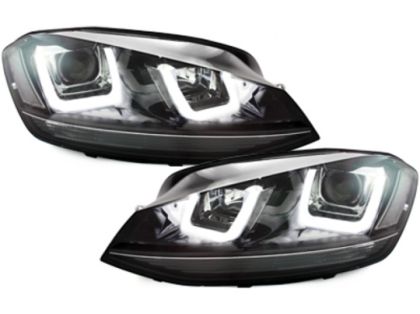 Φανάρια εμπρός Vw Golf 6 angel eyes – με design Vw Golf 7 με μαύρη επιμηκής γραμμή , με λάμπες (Η1) – σετ 2τμχ.