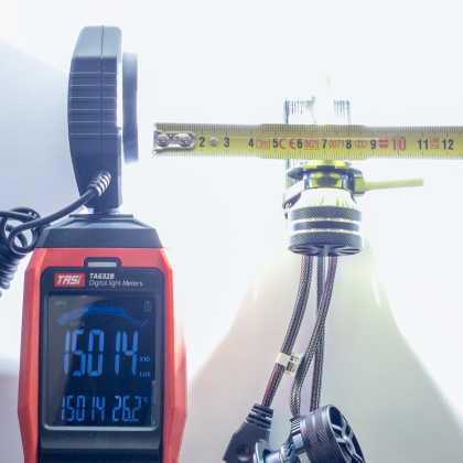 Ένταση φωτεινότητας: 150.000 lux μετρημένη στα 7 cm. από την πηγή του λαμπτήρα (για σύγκριση λαμπτήρων αλογόνου, η μετρούμενη ισχύς στα 7 cm από την πηγή είναι 10700 lux, δηλαδή 15 φορές μεγαλύτερη. Στις φωτογραφίες, μπορείτε να δείτε τις πραγματικές μετρήσεις και των δύο τύπων λαμπτήρων από μετρητή lux μοντέλο TA632B, με μέγιστο όριο καταγραφής 200.000 lux. Αν η τιμή της μέτρησης είναι πάνω από 99.999, τότε εμφανίζεται μια ένδειξη "x10"στην οθόνη που σημαίνει ότι αν η μέτρηση είναι 155.000 lux, η οθόνη θα δείχνει 15.500 και θα ανάψει η ένδειξη "x10".)</p>
