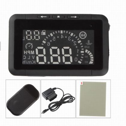 <p>Συσκευή προβολής ενδείξεων του υπολογιστή ταξιδίου του αυτοκινήτου στο μπροστά τζάμι – στιγμιαίες στροφές , χιλιόμετρα ανά ώρα , θερμοκρασία λαδιού ,τάση μπαταρίας , χιλιόμετρα και άλλα.</p>