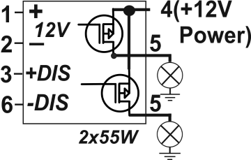 Η είσοδος "+DIS" (μαύρο) είναι για απενεργοποίηση με +12V , για παράδειγμα από τα φώτα θέσεως (ψείρες).<br />