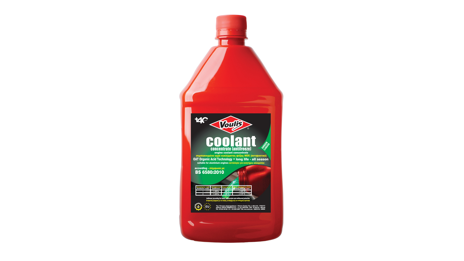 Υψηλής ποιότητας προϊόν το οποίο παρέχει προστασία από τους – 75 °C έως τους +165 °C. Παράλληλα χάρις στα ειδικά του πρόσθετα προστατεύει τα μεταλλικά μέρη του αυτοκινήτου από σκουριά και διάβρωση.